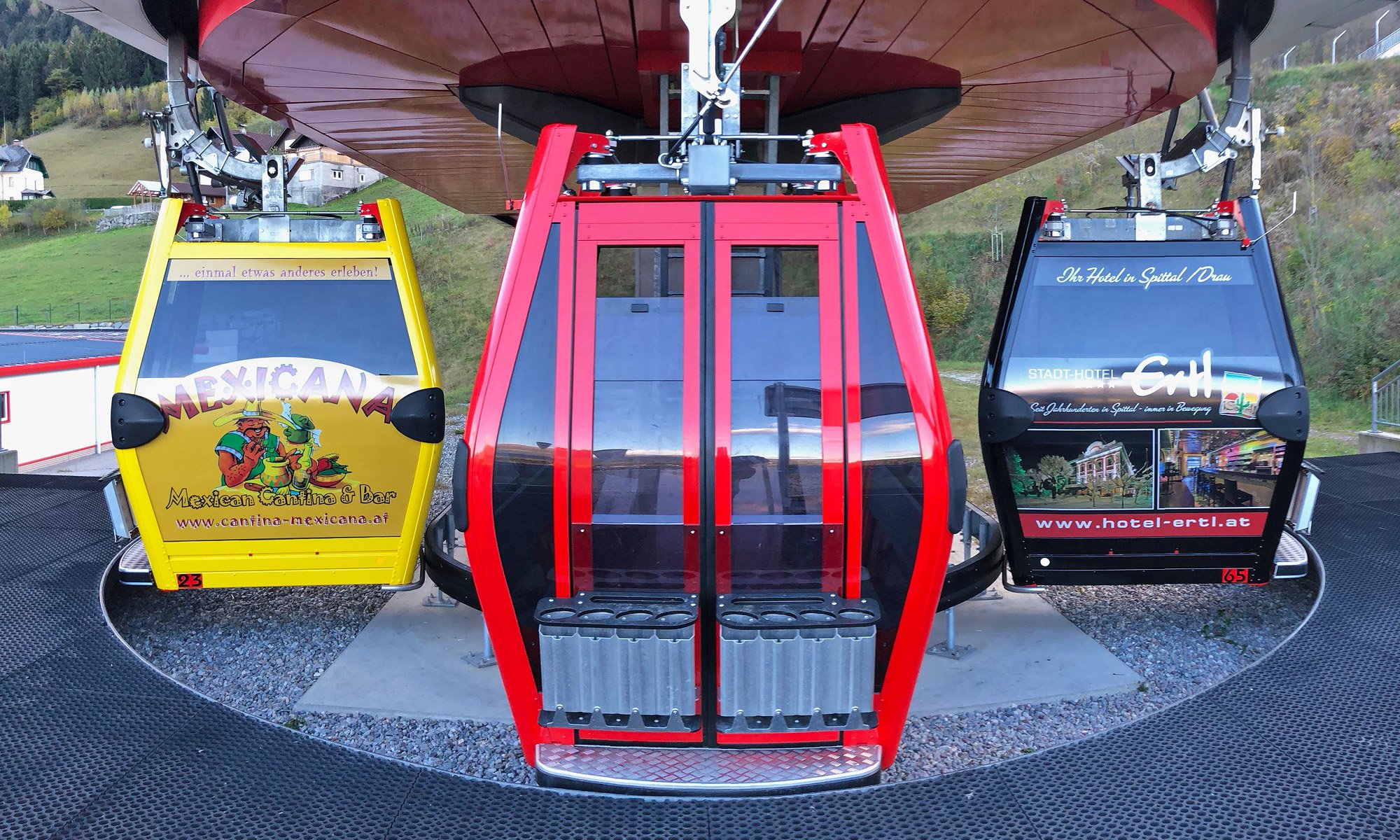 Eine Herausforderung der besonderen Art - Vollbeklebung von gleich 2 Gondeln der neuen Goldeck Bergbahn. Die eine für die Cantina & Hacienda Mexicana und die andere für das Hotel Ertl & Salud - beide total konträr im jeweiligen corporate design ...
