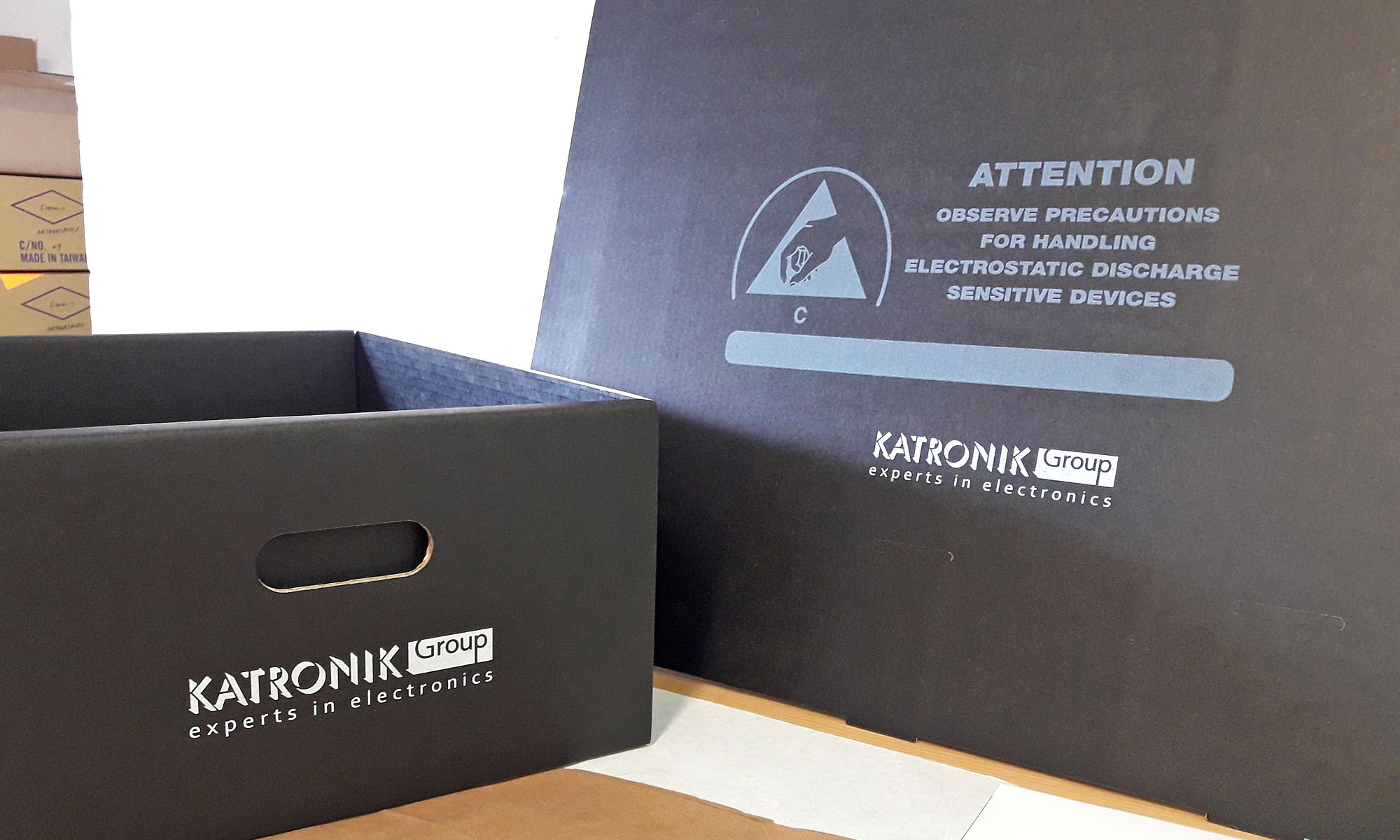 Individualisierung von ESD-Sonderverpackungen für die Elektronikindustrie - in dem Fall umgestzt durch UV-Druck in weiß ...